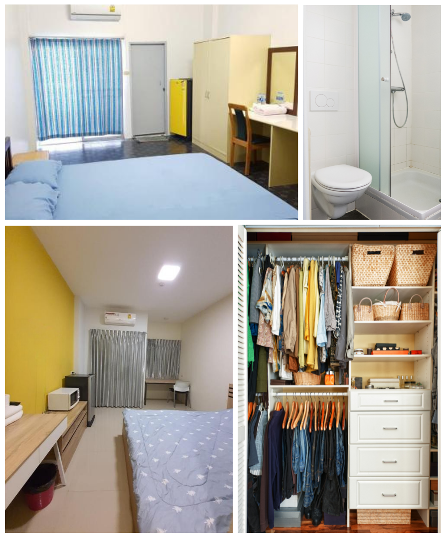 - พร้อมเฟอร์นิเจอร์พื้นฐาน ได้แก่ เตียง ฟูกนอน ผ้าปูที่นอน หมอน ผ้าห่ม โต๊ะเขียนหนังสือ ตู้เสื้อผ้า เครื่องปรับอากาศ ตู้เย็น ไมโครเวฟ และห้องน้ำที่มีชักโครก