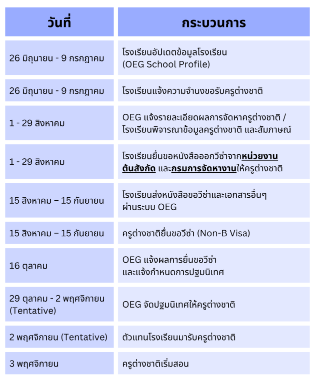ลำดับการสื่อสารและการดูแลครูต่างชาติ
