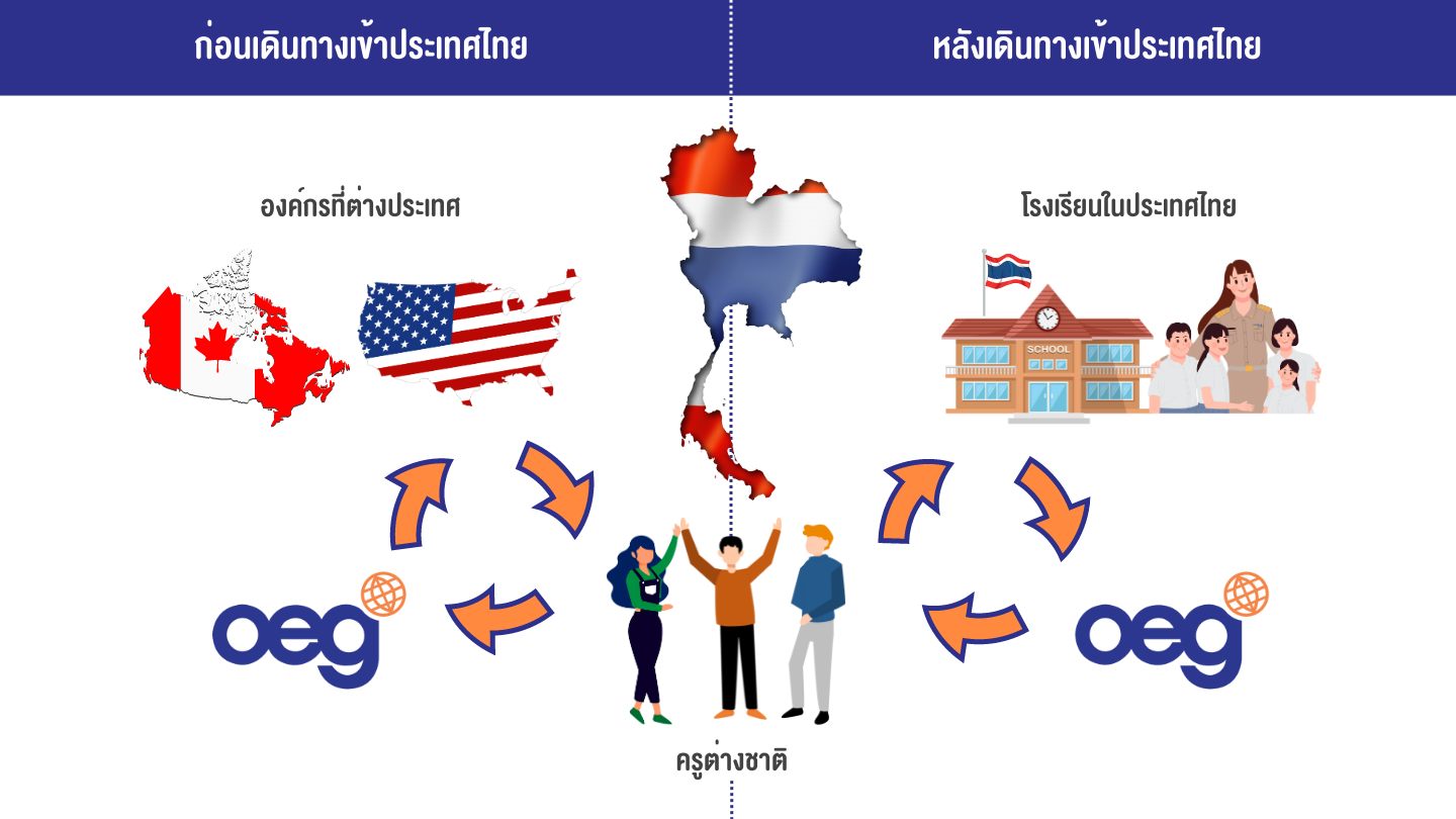 โครงการ OEG Teach in Thailand ดำเนินโครงการตั้งแต่ พ.ศ. 2543 เป็นโครงการแลกเปลี่ยนวัฒนธรรมที่ดำเนินการร่วมกับองค์กรแลกเปลี่ยนในต่างประเทศที่ใช้ภาษาอังกฤษเป็นภาษาแม่ จากประเทศสหรัฐอเมริกา อังกฤษ แคนาดา โดยเปิดโอกาสให้ชาวต่างชาติที่สนใจในวัฒนธรรมและประเทศไทย มีโอกาสเรียนรู้วัฒนธรรมไทยผ่านการใช้ชีวิตในประเทศไทย ด้วยการเป็นผู้สอนหรือผู้ช่วยสอนในโรงเรียนทุกระดับทั้งของภาครัฐและภาคเอกชน นอกจากโครงการฯ จะช่วยเผยแพร่วัฒนธรรมและชีวิตความเป็นอยู่ที่ดีงามของไทยแล้ว ยังมีส่วนในการส่งเสริมและสนับสนุนการเรียนการสอนภาษาอังกฤษในโรงเรียนไทยให้ประสบความสำเร็จมากขึ้น ซึ่งการรับสมัครผู้เข้าร่วมโครงการเป็นการดำเนินการโดยตรงในต่างประเทศ