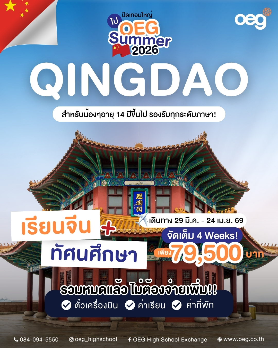 เหมาะสำหรับ : นักเรียนที่อยากพัฒนาภาษาจีนในสภาพแวดล้อมจริง และได้ทัศนศึกษาในสถานที่ท่องเที่ยวขึ้นชื่อของเมือง Qingdao