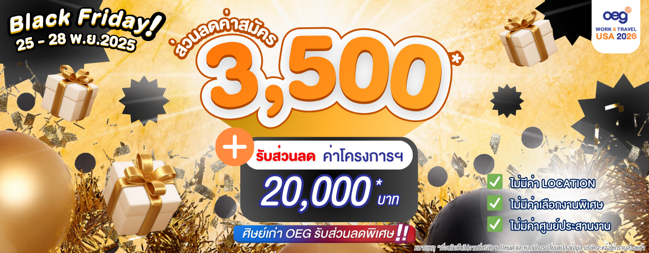 4. ส่วนลดค่าโครงการฯ นี้ ใช้เป็นส่วนลดค่าธรรมเนียมโครงการ OEG Work and Travel USA 2026 งวดที่ 2 เท่านั้น