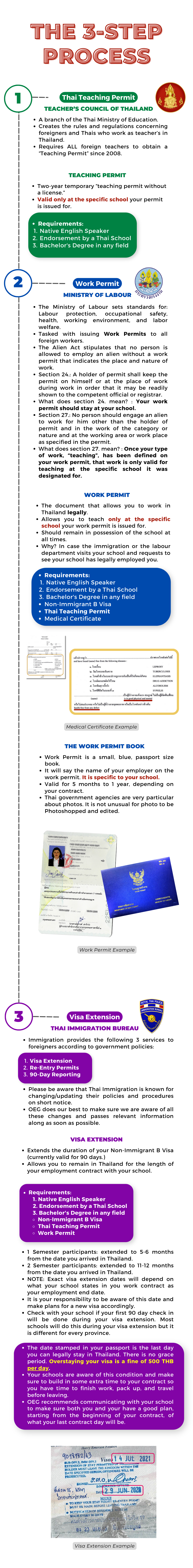 - Your school has 90 days from your arriving in Thailand to apply for an obtain your Teaching Permit, Work Permit and Visa Extension.