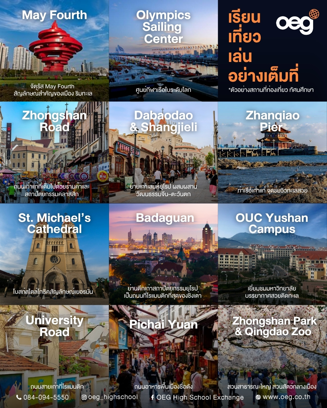 เหมาะสำหรับ : นักเรียนที่อยากพัฒนาภาษาจีนในสภาพแวดล้อมจริง และได้ทัศนศึกษาในสถานที่ท่องเที่ยวขึ้นชื่อของเมือง Qingdao